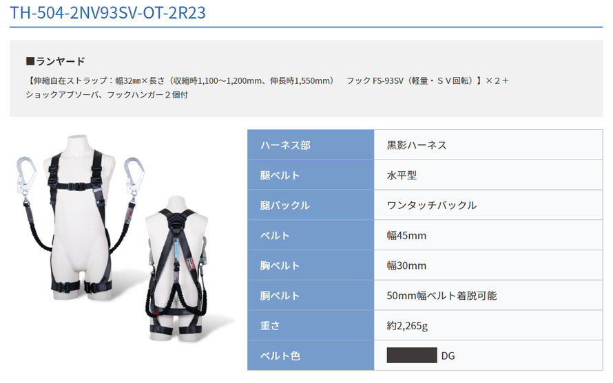 ツヨロン黒影ハーネスダブルランヤード付き TH-504-2NV93SV-OT-2R23