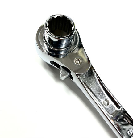 蕨上田さんから別注品の「総磨きラチェットダブルカット」のご紹介です(^.^)こちらは17mmと21mmの総磨きのラチェットで、17mm側も21mm側も両方カットされていて、狭い場所での作業に最適!コンパクトで腰袋にもサッと入る大きさ!非常に使い勝手のいい商品となっております(^.^)